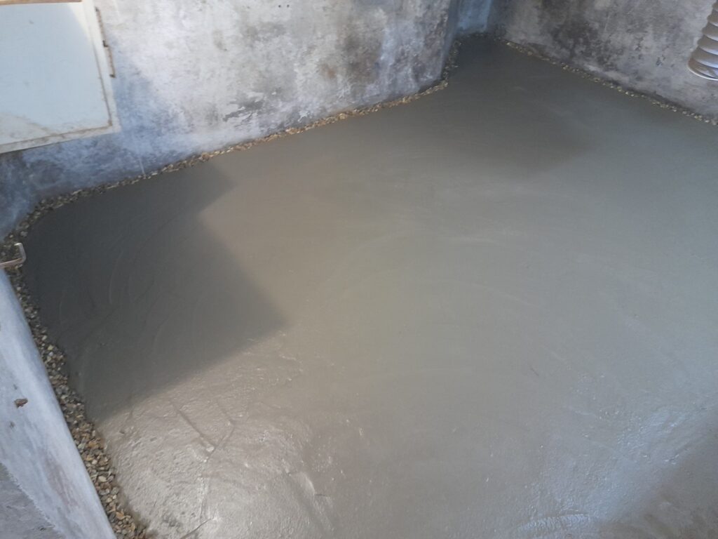 Le sol de cette cave présente des petites fissures qui permettent à l’eau des environs de s’infiltrer au travers du bêton et d’inonder cette cave jusqu’à une hauteur de 30 cm.